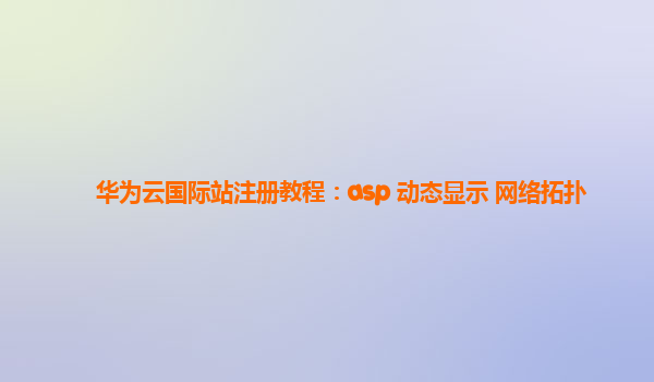 2024-01-02华为云国际站注册教程:ASP动态显示网络拓扑 第一步:创建华为云账号 在华为云官网(https://www.huaweicloud.com)点击注册按钮,填写相关信息,包括邮箱、密码等,并同意用户协议。 第二步:登录华为云控制台 在...