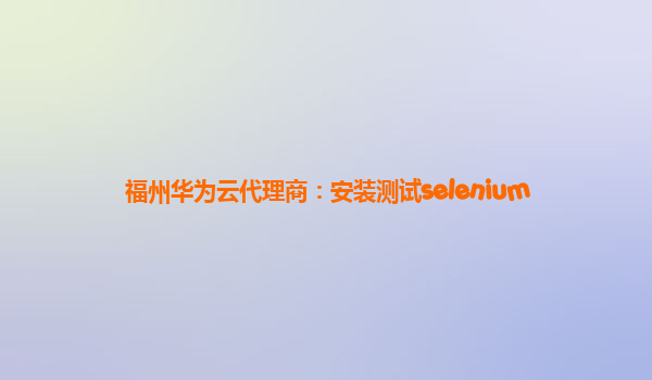 2023-12-31福州华为云代理商:安装测试Selenium 什么是Selenium? Selenium是一款自动化浏览器测试工具,可模拟用户行为进行网站的测试和自动化操作。这个工具可以模拟各种浏览器,包括Chrome、Firefox、IE等常用浏览器。 ...