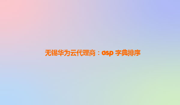 无锡华为云代理商:ASP字典排序介绍无锡华为云代理商是华为云的授权代理商,致力于为企业提供稳定、高效、安全的云计算服务。ASP字典排序是一种常用的排序算法,它的实现过程简单,速度快,被广泛应用于各种程序设...