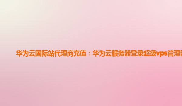 2023-12-26华为云国际站代理商充值:华为云服务器登录超级vps管理器 什么是华为云国际站代理商充值? 华为云国际站代理商充值是指,代理商通过自己的华为云账户,为自己或客户的华为云账户充值的过程。代理商可以选择不同的...