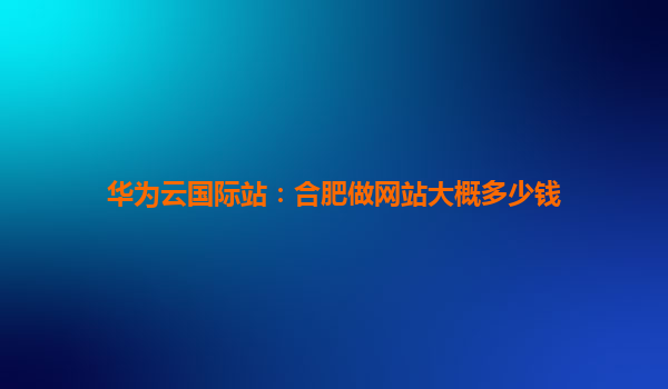 2025-11-27华为云国际站:合肥做网站大概多少钱? 一、合肥网站建设成本概述 在合肥搭建一个网站的费用差异较大,主要取决于网站类型、功能需求以及开发方式。一般来说: 基础企业展...