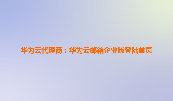 2026-01-05华为云代理商:华为云邮箱企业版登录首页全方位解析 一、华为云邮箱企业版的核心价值 华为云邮箱企业版作为华为云生态的重要组件,专为企业用户打造高效、安全的云端通信解决方案。其登...