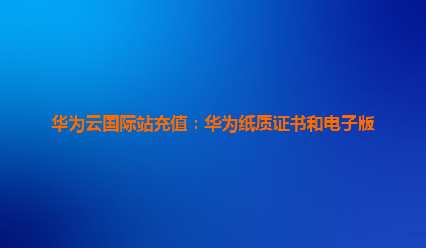 2025-10-23华为云国际站充值:纸质证书与电子版的完美结合 一、华为云国际站充值的便捷性 华为云国际站为用户提供了灵活多样的充值方式,无论是企业用户还是个人开发者,...