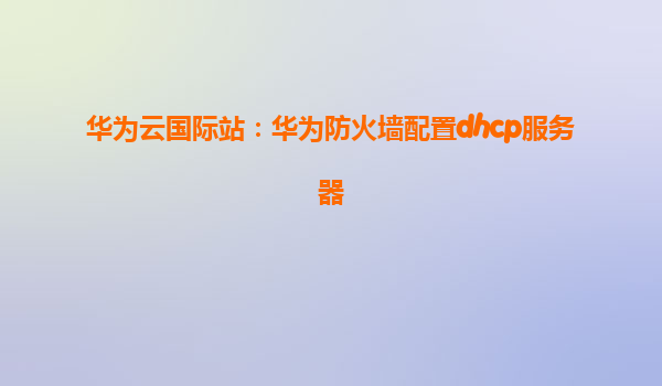 华为云国际站:华为防火墙配置DHCP服务器全攻略 一、华为云防火墙与DHCP服务的核心优势 华为云防火墙集成DHCP服务器功能,为企业网络提供高效、安全的IP地址分配解决方案...