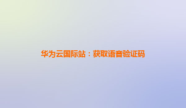 2025-10-10华为云国际站:获取语音验证码的智能解决方案 引言 在全球化业务拓展中,安全、高效的验证码服务是企业保障用户身份安全的关键环节。华为云国际站推出的语音验证码服务,凭借其高可靠性、全球覆盖和智能化...