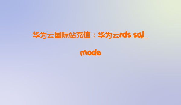2025-10-08华为云国际站充值:华为云RDSSQL_MODE配置详解 引言 在数据库管理中,SQL_MODE是一个至关重要的参数,它决定了MySQL数据库的SQL语法校验规则和数据校验行为。华为云RDS(RelationalDatabaseService)作...
