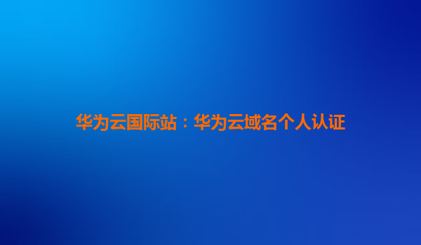 2026-01-04华为云国际站:华为云域名个人认证全解析 引言:为什么选择华为云域名服务? 在数字化转型的浪潮中,拥有一个专属域名是企业或个人品牌建设的第一步。华为云作...