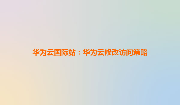 2025-08-27华为云国际站:华为云修改访问策略,赋能企业全球化安全运营 引言:数字化转型下的访问策略新挑战 随着企业全球化进程加速,多云环境与分布式架构成为常态,如何高效管理资源访问权限、保障数...