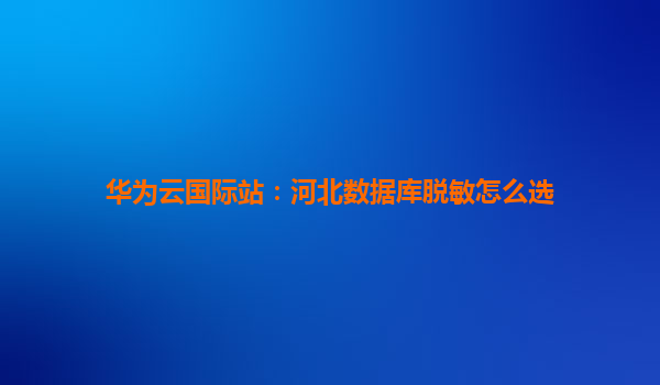 2025-08-27华为云国际站:河北数据库脱敏方案选择指南 一、数据库脱敏的核心需求与挑战 在河北地区,企业数字化转型加速推进,数据库作为核心资产,其安全防护尤为重要。...