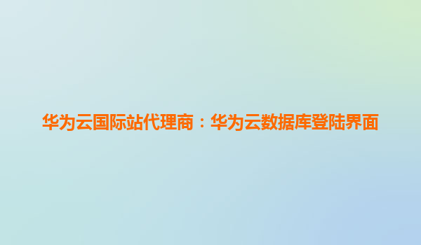 华为云国际站代理商:华为云数据库登陆界面详解 引言 随着企业数字化转型的加速,云数据库成为现代业务架构的核心组件。作为全球领先的云服务提供商,华为云凭借其强大的技术实力和全球化...