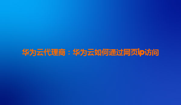 2026-01-04华为云代理商:华为云如何通过网页IP访问 引言 随着云计算技术的快速发展,越来越多的企业选择将业务迁移到云端。华为云作为全球领先的云计算服务提供商,凭借其强大的技术实力和丰富的产品线,为企业提...