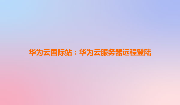 2025-08-21华为云国际站:华为云服务器远程登录的卓越体验 一、引言:数字化时代下的云端运维新选择 随着全球企业加速数字化进程,云服务器的远程管理能力成为关键竞争力...