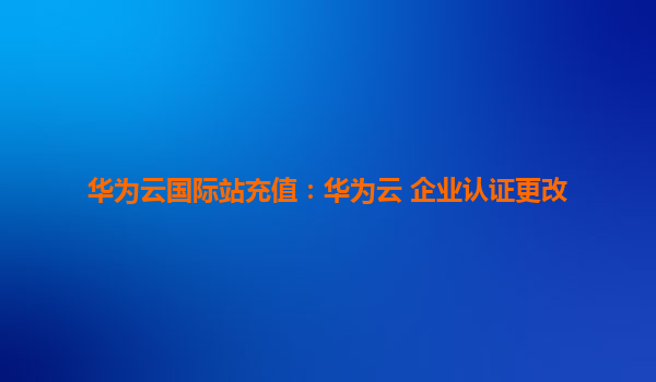 2025-08-21华为云国际站充值与企业认证更改全攻略 一、华为云国际站充值与认证的重要性 在全球化数字经济的浪潮下,华为云国际站因其卓越的服务能力,成为众多企业的云端首选。高效充值与灵活的企业认证体系,是保障业务连续...