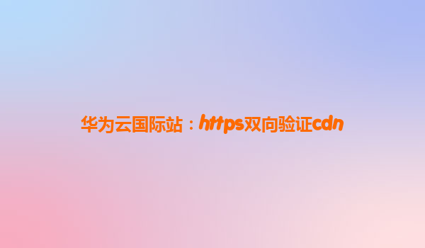 2025-08-09华为云国际站:HTTPS双向验证CDN的安全加速解决方案 一、HTTPS双向验证CDN的核心价值 在数字化时代,数据安全与传输效率成为企业上云的核心诉求。华为云国际站推出的HTTP...