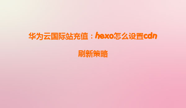 2025-08-07华为云国际站充值:Hexo如何设置CDN刷新策略 在当今数字化时代,网站性能和访问速度对用户体验至关重要。对于使用Hexo搭建的静态博客或网站,通过CDN(内容分发网络)加速和合理的刷新策略可以显著提...