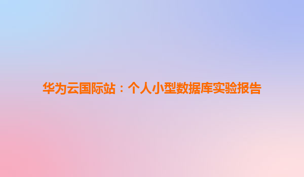2025-06-30华为云国际站:个人小型数据库实验报告 一、实验背景与目标 为验证华为云国际站在个人开发者场景下的数据库服务能力,本次实验基于华为云ECS云服务器搭建MySQL...