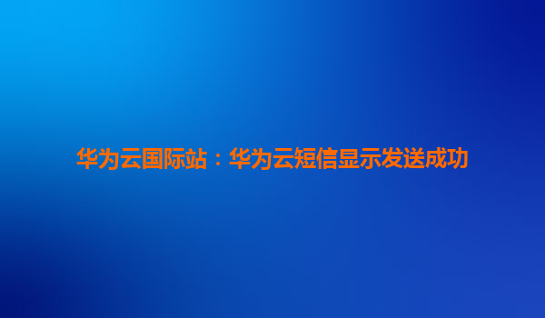 2025-06-29华为云国际站:短信发送成功背后的技术实力与生态优势 一、短信发送成功:全球通信的基石时刻 当华为云国际站用户界面显示"短信发送成功",这简单的六个字背后承载着企业全球业务通信的...