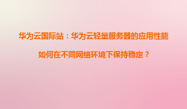 华为云国际站:华为云轻量服务器的应用性能如何在不同网络环境下保持稳定? 引言:数字化时代的稳定性挑战 在全球化业务部署和混合办公常态化的今天,企业应用对服务器性能的稳定性提出了更...