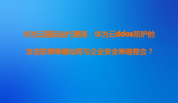 2026-01-09华为云国际站代理商:华为云DDoS防护的攻击防御策略如何与企业安全策略整合? 一、引言 随着数字化转型的加速,企业面临的网络安全威胁日益严峻,尤其是分布式拒绝服务(DDoS)攻击已成为企业业务连续性的...