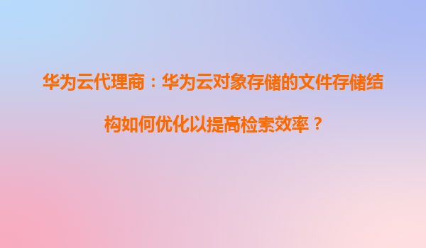 2026-01-09华为云代理商:华为云对象存储的文件存储结构如何优化以提高检索效率? 引言 随着云计算和大数据技术的快速发展,企业对数据存储和检索效率的需求日益增长。华为云对象存储(OBS)作为一款高...