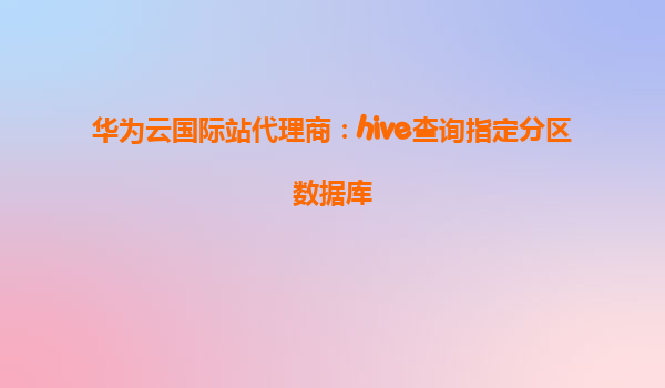 2025-06-23华为云国际站代理商指南:高效利用Hive查询指定分区数据库的最佳实践 引言:大数据时代的分区查询挑战 在海量数据场景中,传统全表扫描方式效率低下且成本高昂。Hive的分...