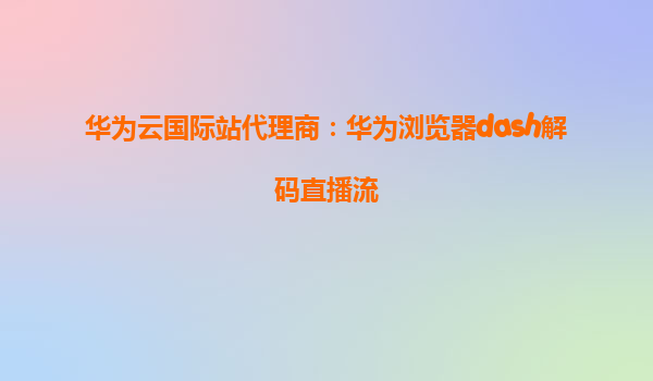 2025-04-23华为云国际站代理商:华为浏览器dash解码直播流 随着互联网技术的飞速发展,在线视频和直播流媒体逐渐成为现代社会娱乐和信息传播的重要方式。为了满足全球用户对于高清视频流的需求,华为云提供了强大的云计算服务...