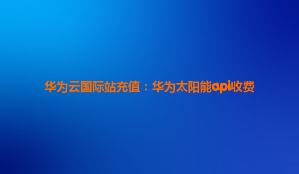 2025-04-24华为云国际站充值:华为太阳能API收费 随着科技的不断发展,能源行业也逐渐朝着智能化和数字化方向迈进,尤其是太阳能产业。在这一过程中,云计算平台的角色愈加重要。华为云作为全球领先的云服务提供商,通过其创...