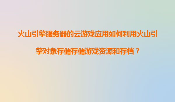 2025-11-21火山引擎服务器的云游戏应用如何利用火山引擎对象存储存储游戏资源和存档? 一、云游戏与火山引擎的结合背景 云游戏作为近年来快速发展的技术领域,其核心在于将游戏计算和渲染任务转移到云端服务器,用...