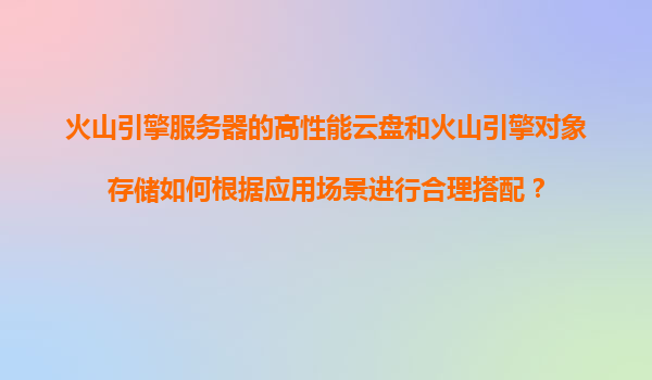 2025-11-19火山引擎服务器的高性能云盘与对象存储的场景化搭配策略 一、火山引擎存储产品的核心优势 火山引擎提供的高性能云盘和对象存储服务具有以下差异化优势: 高性能云盘特性:单盘最高可达100万IO...
