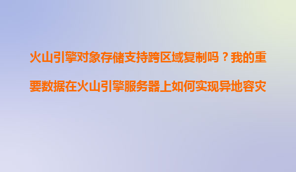 2025-11-16火山引擎对象存储的跨区域复制与异地容灾解决方案 在数据爆炸式增长的今天,企业数据的安全存储与异地容灾已成为业务连续性的关键保障。火山引擎作为字节跳动旗下的云服务平台,凭借其强大的基础设施和技术...