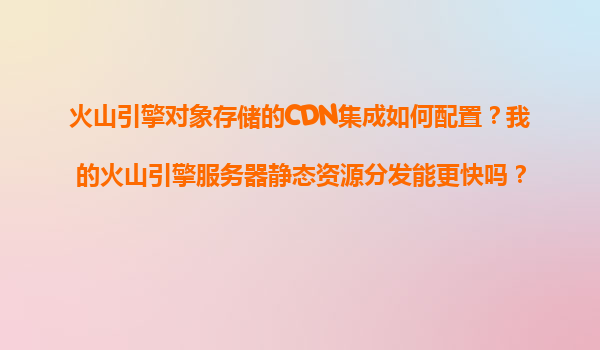 2025-11-16火山引擎对象存储与CDN集成:加速静态资源分发的秘密武器 为什么选择火山引擎对象存储与CDN? 在当今数字化时代,网站和应用性能的关键指标之一是加载速度,而静态资源(如图片、视频、JS/CSS文件...