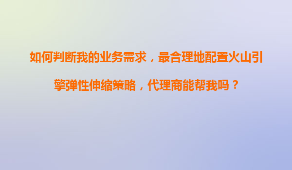 2025-11-14如何合理配置火山引擎弹性伸缩策略,满足业务需求?代理商是否能助力? 一、理解弹性伸缩的核心价值与业务需求关联 弹性伸缩(AutoScaling)是云计算中根据业务负载动态调整资源的核心功能。火山引擎的弹...