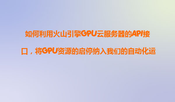 2025-11-10如何利用火山引擎GPU云服务器的API接口将GPU资源启停纳入自动化运维流程 一、火山引擎GPU云服务器的核心价值与优势 火山引擎作为字节跳动旗下的云计算服务平台,其GPU云服务器产品提供高性能计算能力,尤其适用于A...