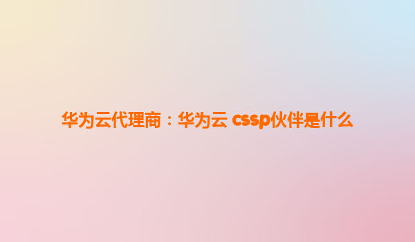 华为云代理商:华为云 CSSP 伙伴是什么