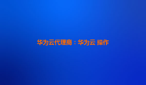 华为云代理商:华为云操作优势解析