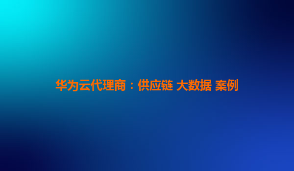 华为云代理商:供应链大数据案例分析