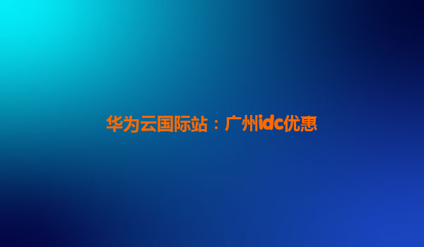 华为云国际站:广州IDC优惠解析