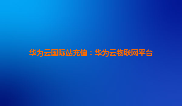 华为云国际站充值:华为云物联网平台全解析