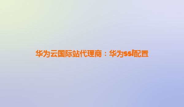华为云国际站代理商:华为SSL配置详解