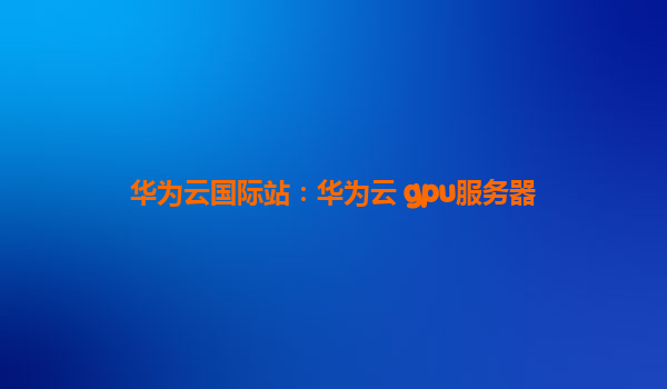华为云国际站:华为云GPU服务器全面解析