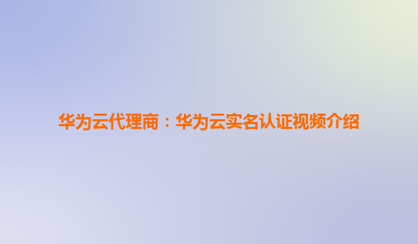 华为云代理商可以为客户提供实名认证的视频指导,帮助客户快速完成认证流程。