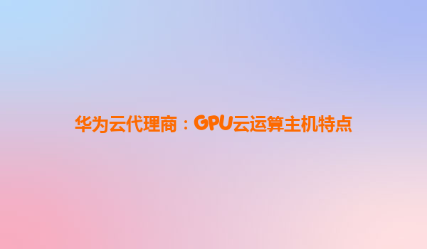 华为云代理商:GPU云运算主机特点详解