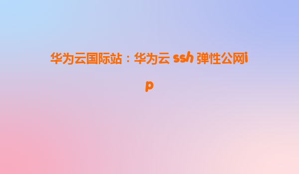 华为云国际站:华为云SSH弹性公网IP全面解析