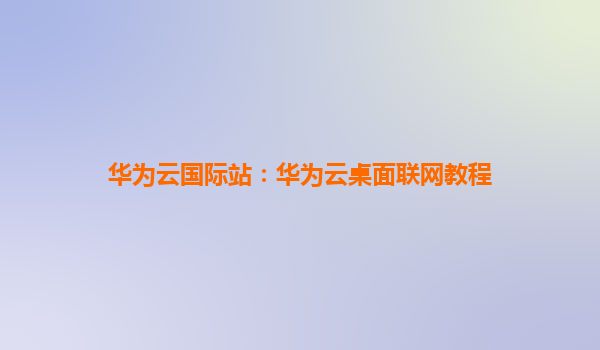 华为云国际站:华为云桌面联网教程