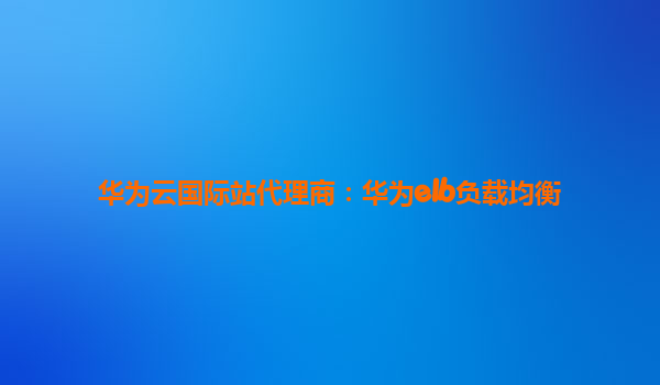 华为云国际站代理商:华为ELB负载均衡的核心优势与应用场景
