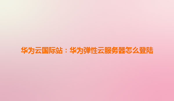 华为云国际站:华为弹性云服务器(ecs)登录全指南