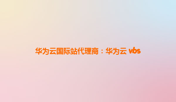 华为云国际站代理商:华为云VBS的卓越优势与解决方案