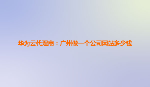 华为云代理商:广州做一个公司网站多少钱?全面解析建站成本与优势