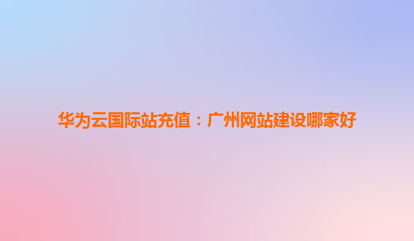 华为云国际站充值:广州网站建设哪家好?华为云助力企业高效上云