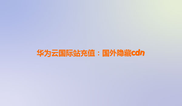 华为云国际站充值:国外隐藏cdn加速解决方案
